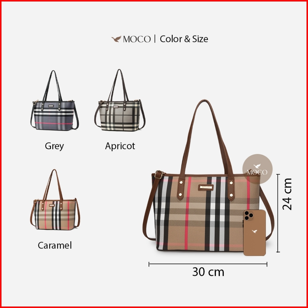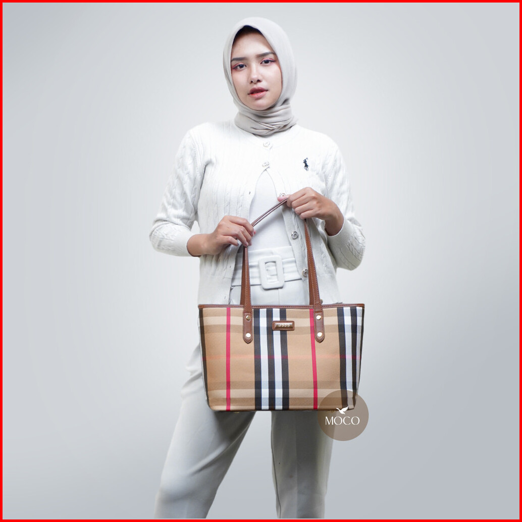 Moco Fashion Totebag Wanita Tas Tenteng Kerja Kuliah Kotak-kotak Aesthetic Korean Style 689-1