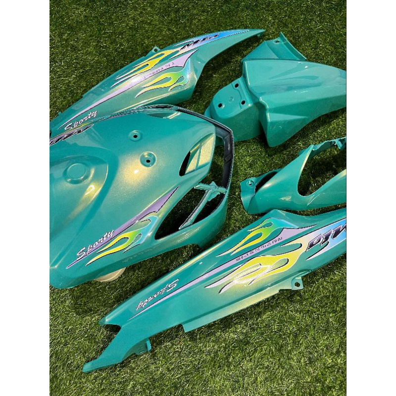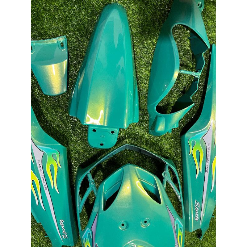 Cover full body halus Yamaha mio smile warna aliens green plus striping transparan