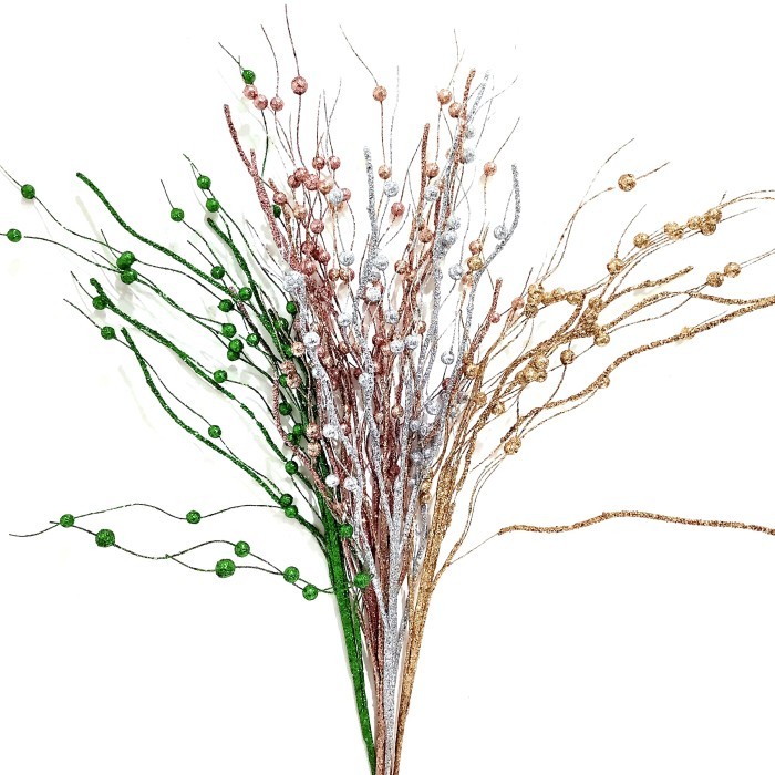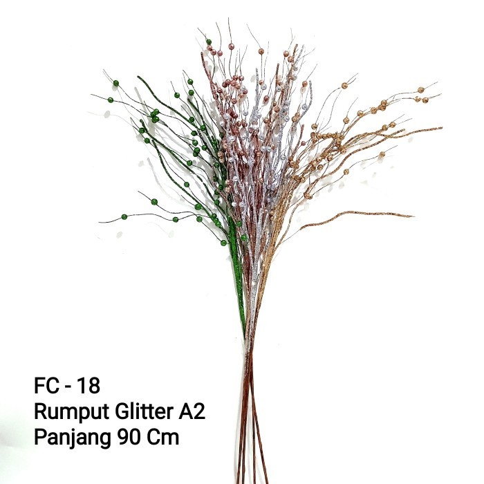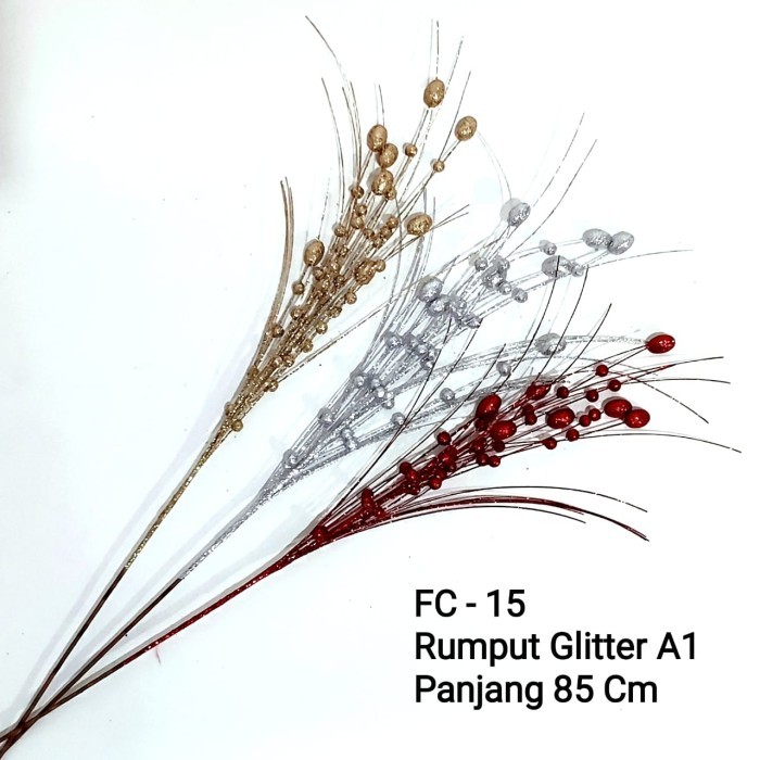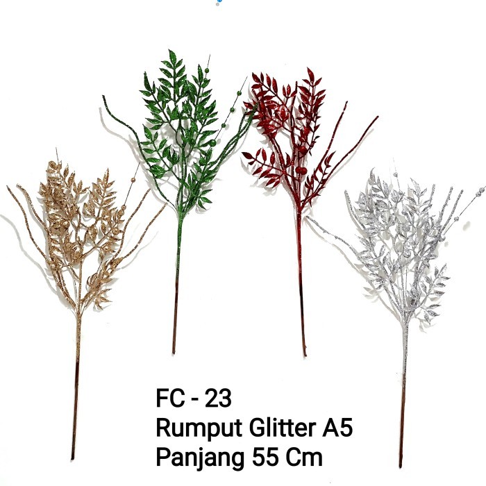 NEW Bunga Natal Gliter Tangkai Panjang Artifical Flower Hiasan Daun Rumput Manik Mote Bunga Ponsetia