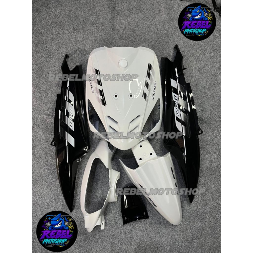 Cover full body halus Yamaha mio sporty warna hitam putih vietnam plus striping transparan