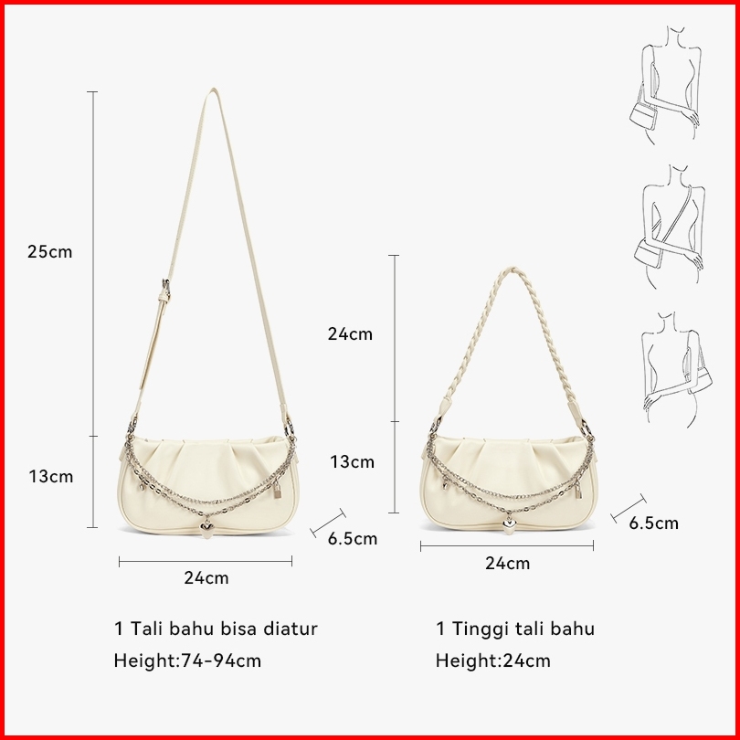 Coraldaisy Tas Wanita 2025 Terbaru Shoulder Bag Sling Bag 3 In 1 Fashion Tas Selempang Underarm Bag