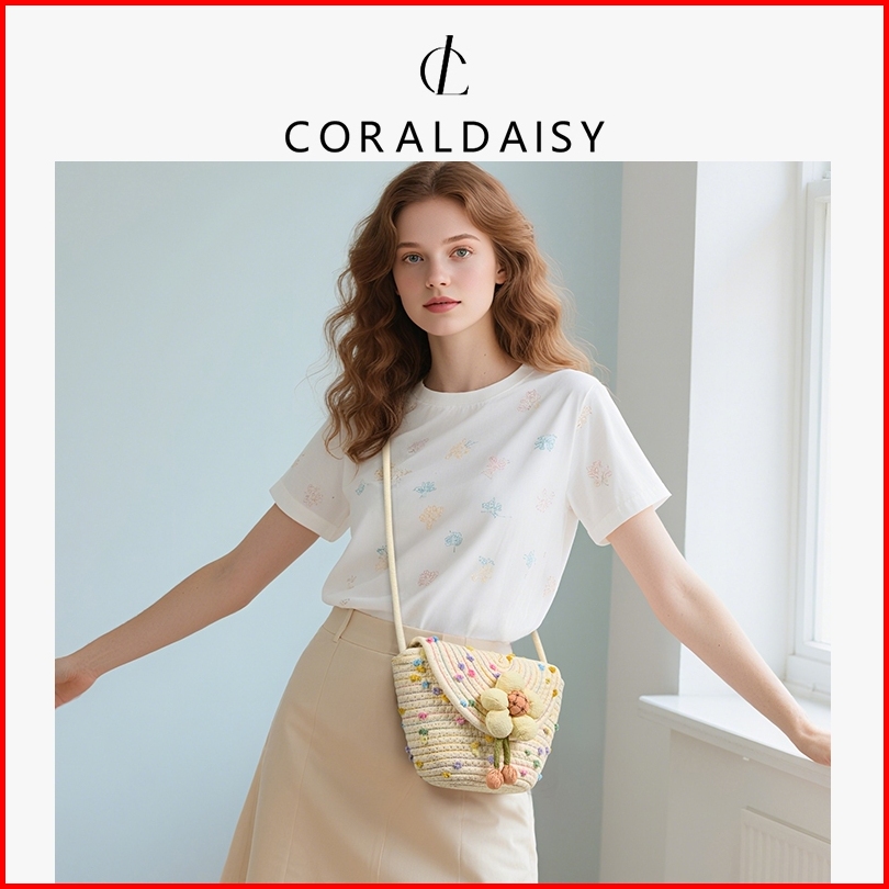 Coraldaisy Tas Wanita 2025 Lucu Bunga Anyaman Sling Bag Tali Panjang Tas Selempang Warna Tas Bahu