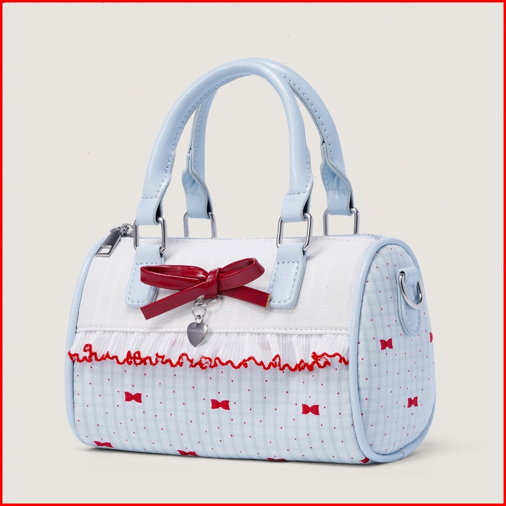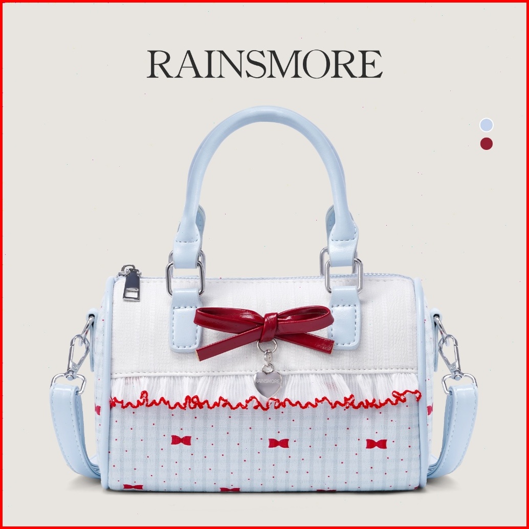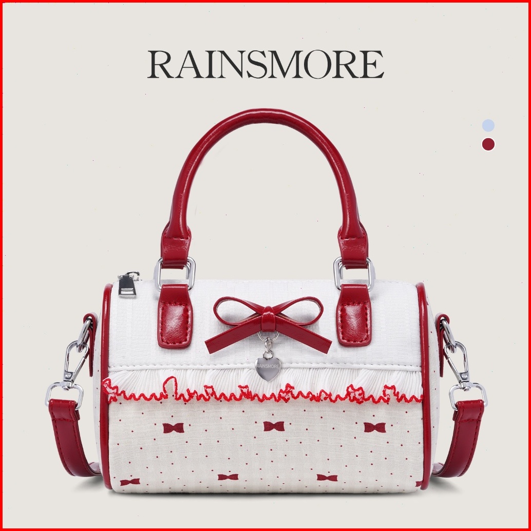 Rainsmore Tas Boston 2025 - Tas Tangan Motif Polka Dot Pita Manis Eksklusif Desain Empuk Seperti Bantal Gaya Serba Cocok