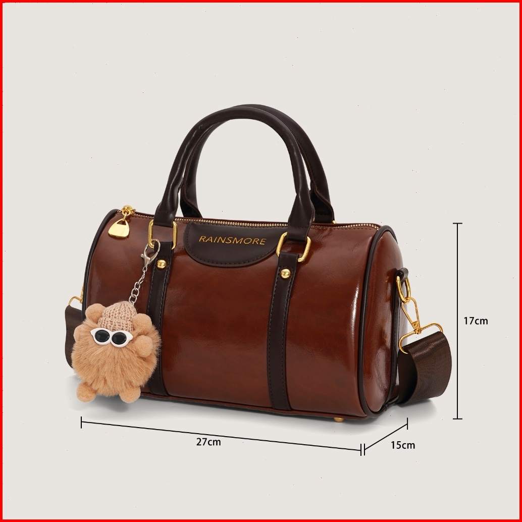 Ainsmore Tas Tangan Wanita Vintage Eksklusif Boston Bag Modis Serbaguna Tren Cocok Untuk Kerja Selempang