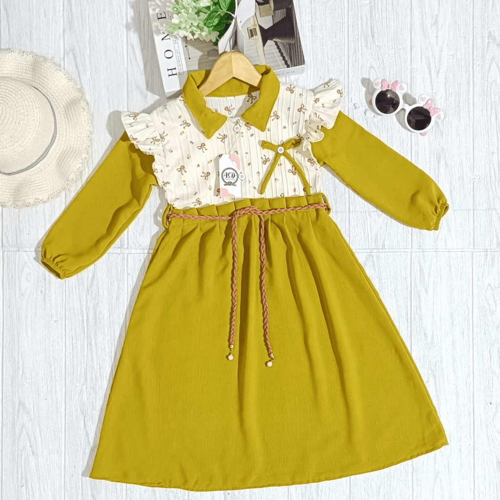 Baju Gamis Aretha Anak Perempuan Usia 1-9 Tahun Crinkle Muslim Free Belt Cantik