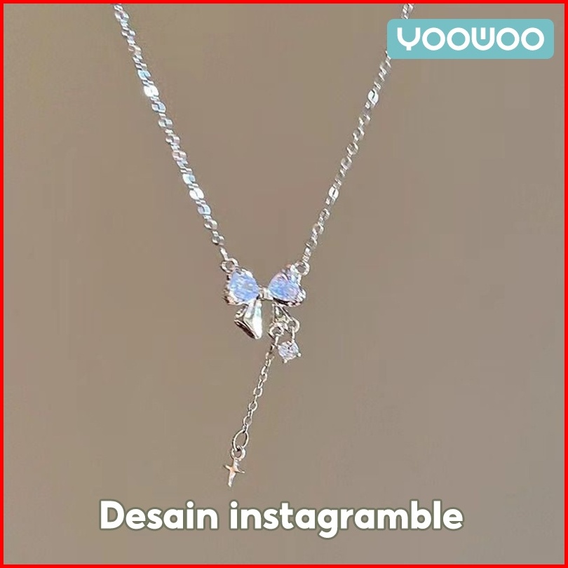 Yoowoo Kalung Alloy Wanita Korea Kalung Perak Necklace Fashion Anti Karat Berlian Kalung Wanita Elegan Terbaru 2025