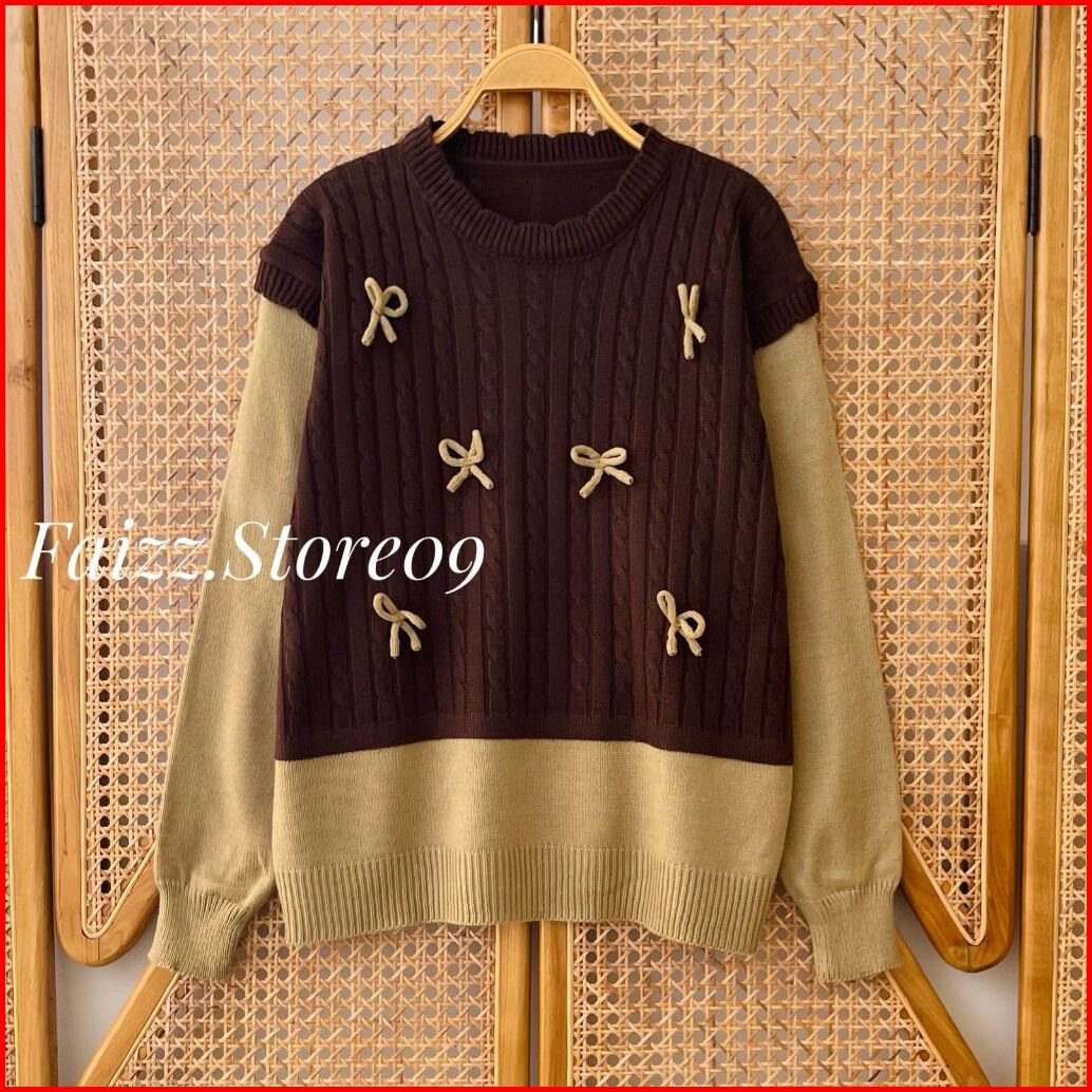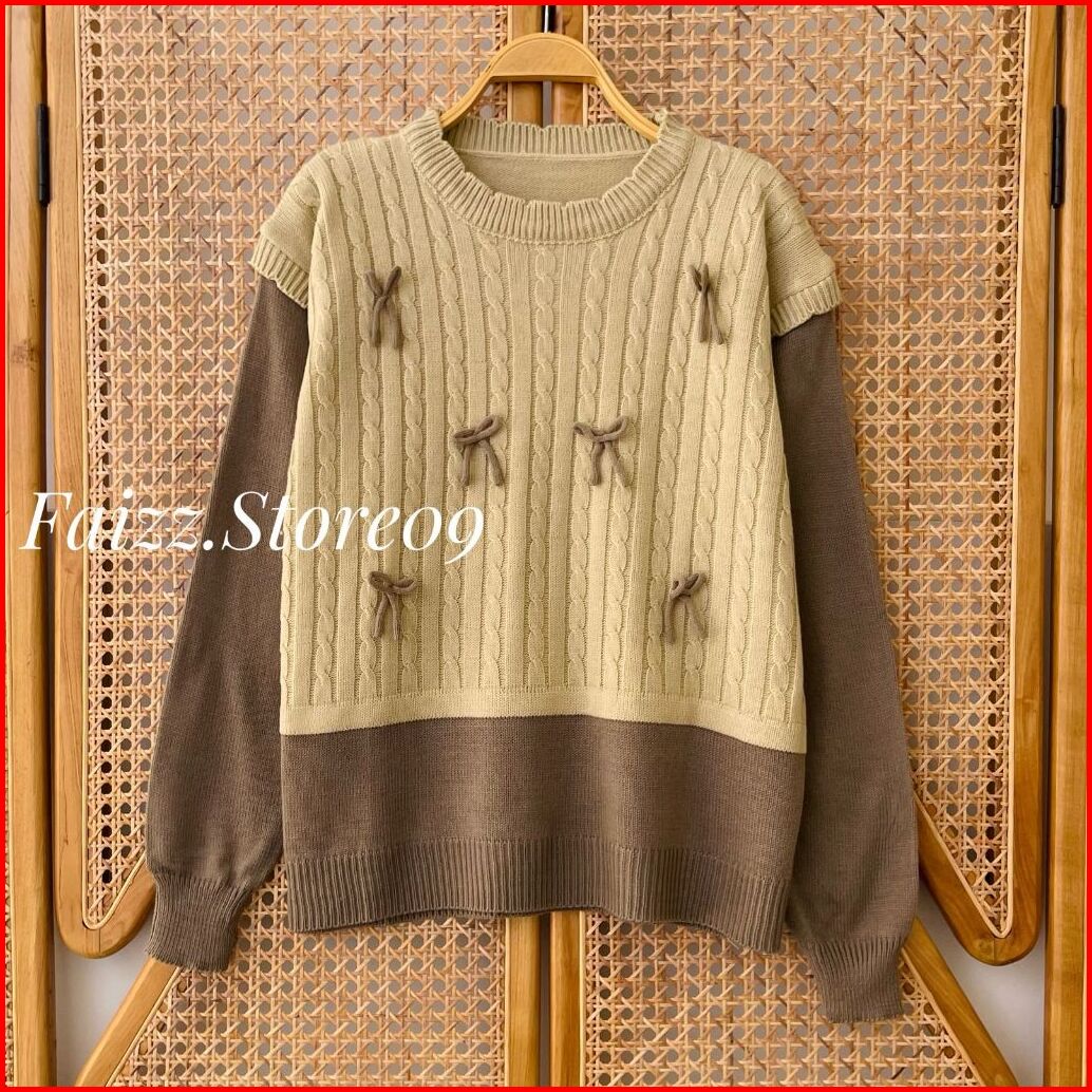 Sierra Blous Knits - Atasan Sweater Rajut Wanita Motif Pita Cable Lengan Panjang Kekinian Korean Style Premium