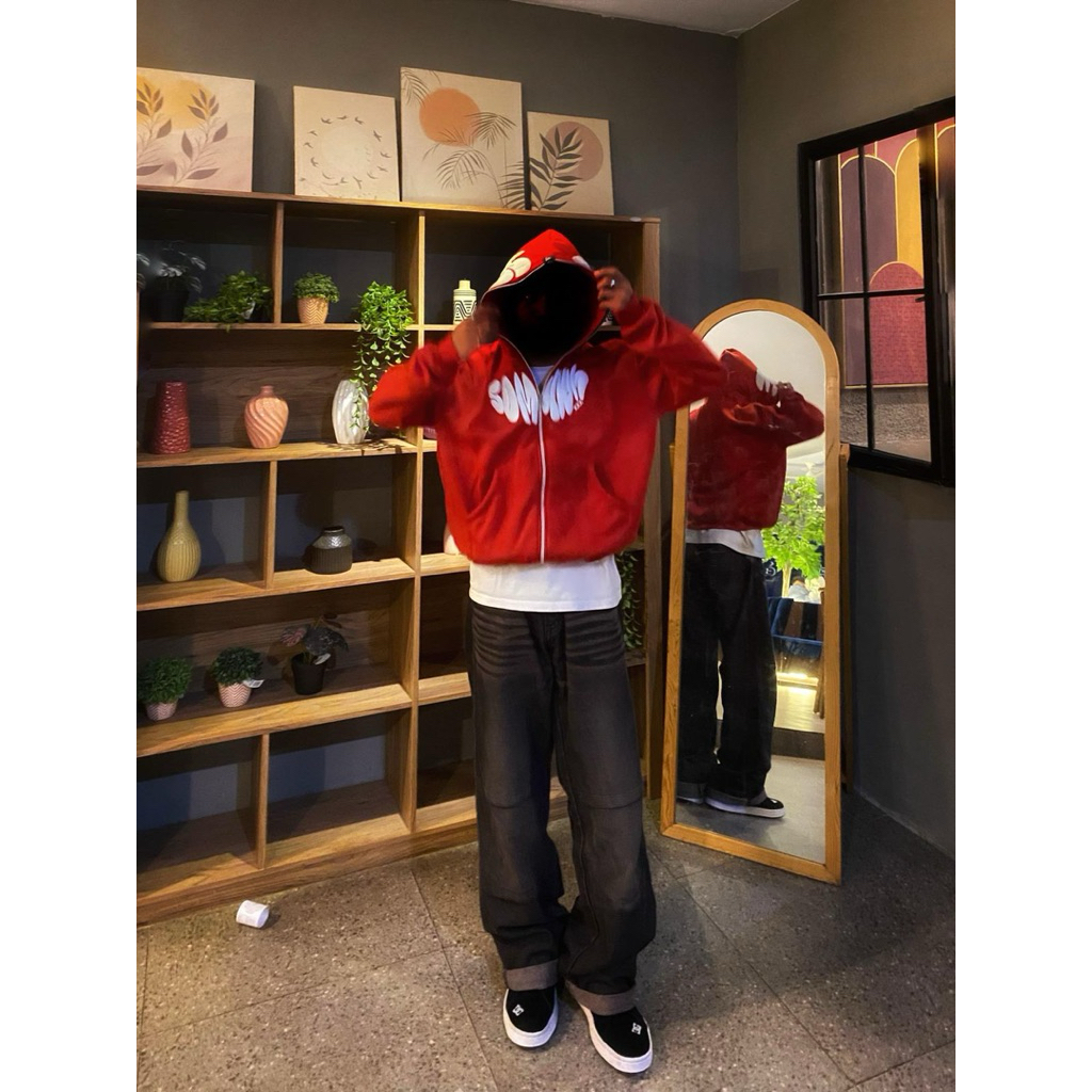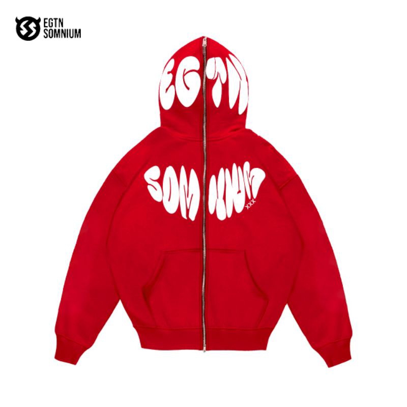 EGTN SOMNIUM Hoodie Boxy Resleting MARSHMELLOW Warna Merah Unisex Pria Wanita