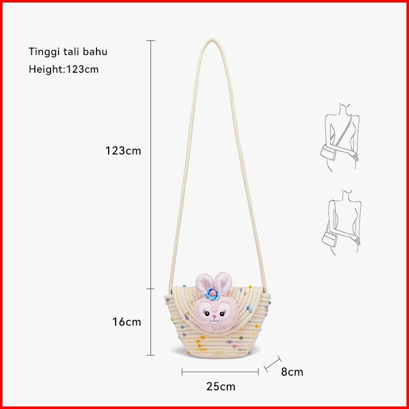 Coraldaisy Tas Wanita 2025 Anyaman Tas Selempang Cute Kelinci Sling Bag Membalik Jepret Tas Bahu