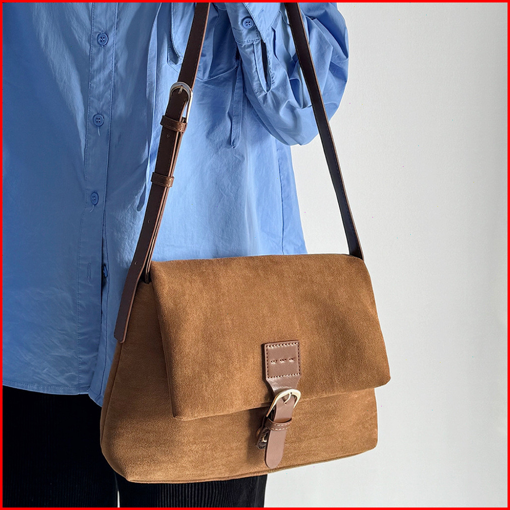 Rainsmore Tas Wanita Korea 2025 Model Vintage Suede Desain Unik Fashionable Tas Selempang Kotak Untuk Kerja