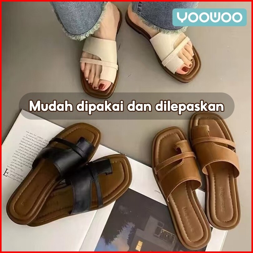 Yoowoo Sandal Jepit Jempol Wanita Sandal Wanita Sandal Tali Sandal Jepit Kulit Sintesis Sandal Anti Slip Korean Style