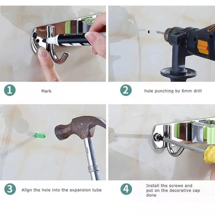 Penjepit Gantungan Sapu Pel Dinding 4 Kait Mop Broom Holder Kapstok Stainless 304 Cantolan Sapu