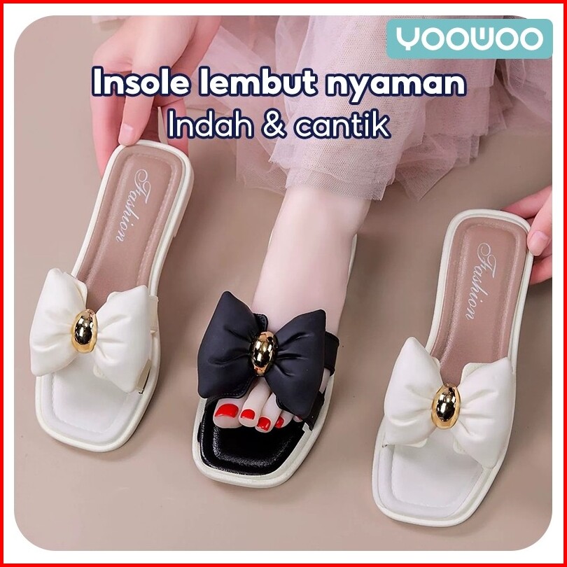 Yoowoo Sandal Wanita Kekinian Sandal Slip On Sandal Flat Sandal Selop Sandal Jelly Sendal Wanita Sandal Teplek Wanita Sa