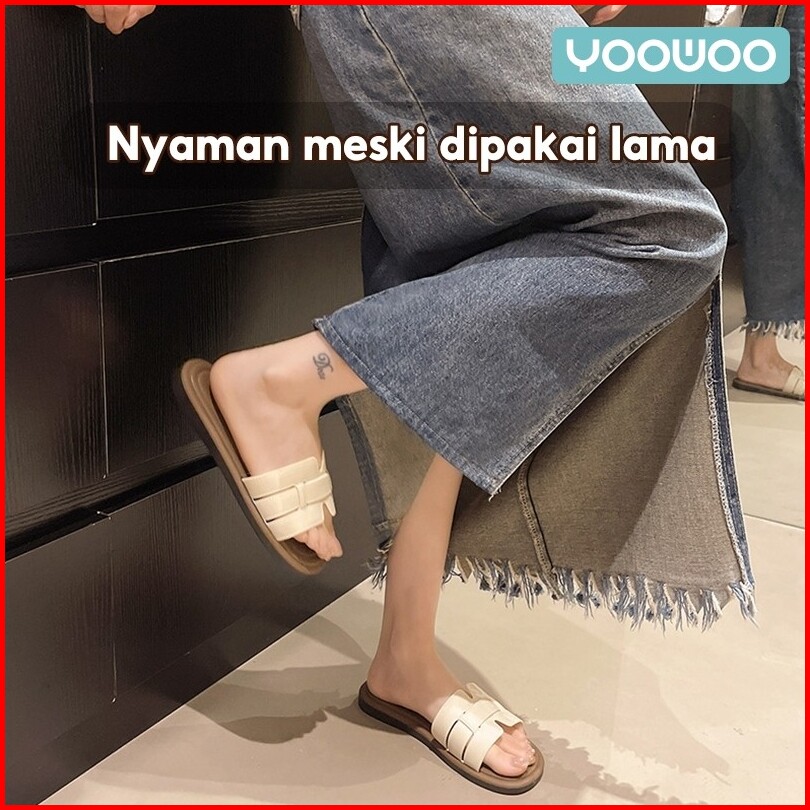 Yoowoo Sandal Wanita Sandal Wanita Kekinian Sandal Flat Wanita Sandal Teplek Wanita Sandal Flat Kasual Wanita