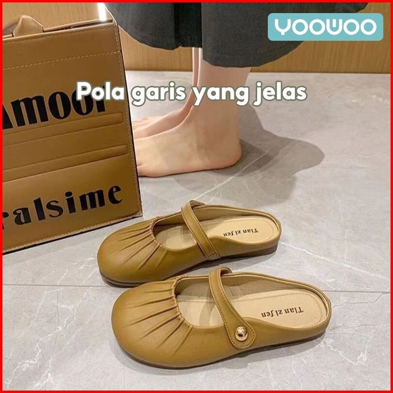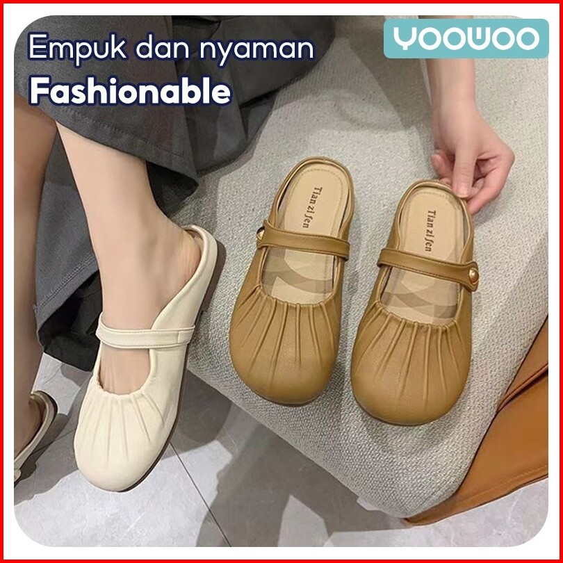 Yoowoo Sandal Slip On Wanita Flat Sandal Empuk Wanita Sandal Fashion Sandal Ujung Tertutup Sandal Fashion Korean Style