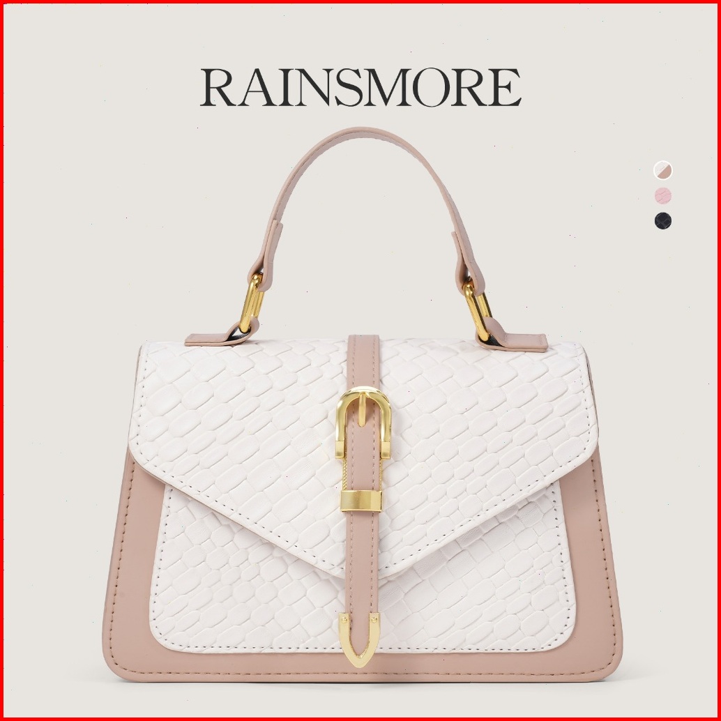 Rainsmore Tas Wanita 2025 - Tas Selempang Handbag Square Elegan Dengan Desain Anyaman Retro Dan Warna Block Yang Trendi