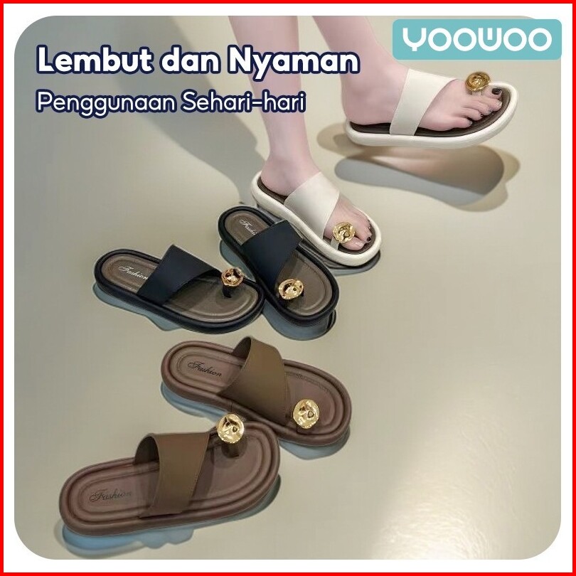 Yoowoo Sandal Untuk Wanita Modis Berlian Imitasi Sandal Pantai Bersol Tebal