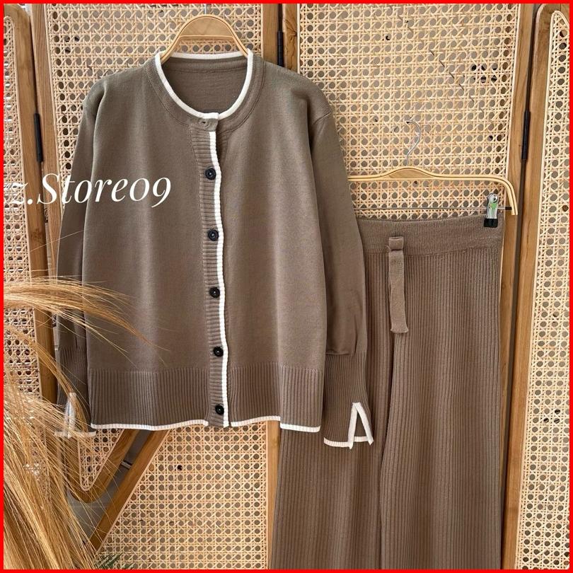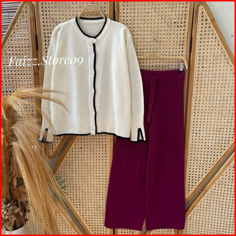 Oneset Cika Cardigan Rajut Wanita Motif Belahan Tangan Setelan Celana Kulot Wanita Premium Kekinian