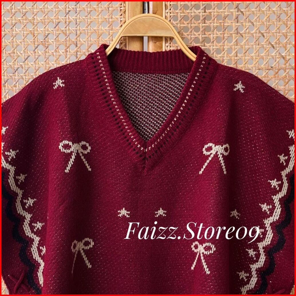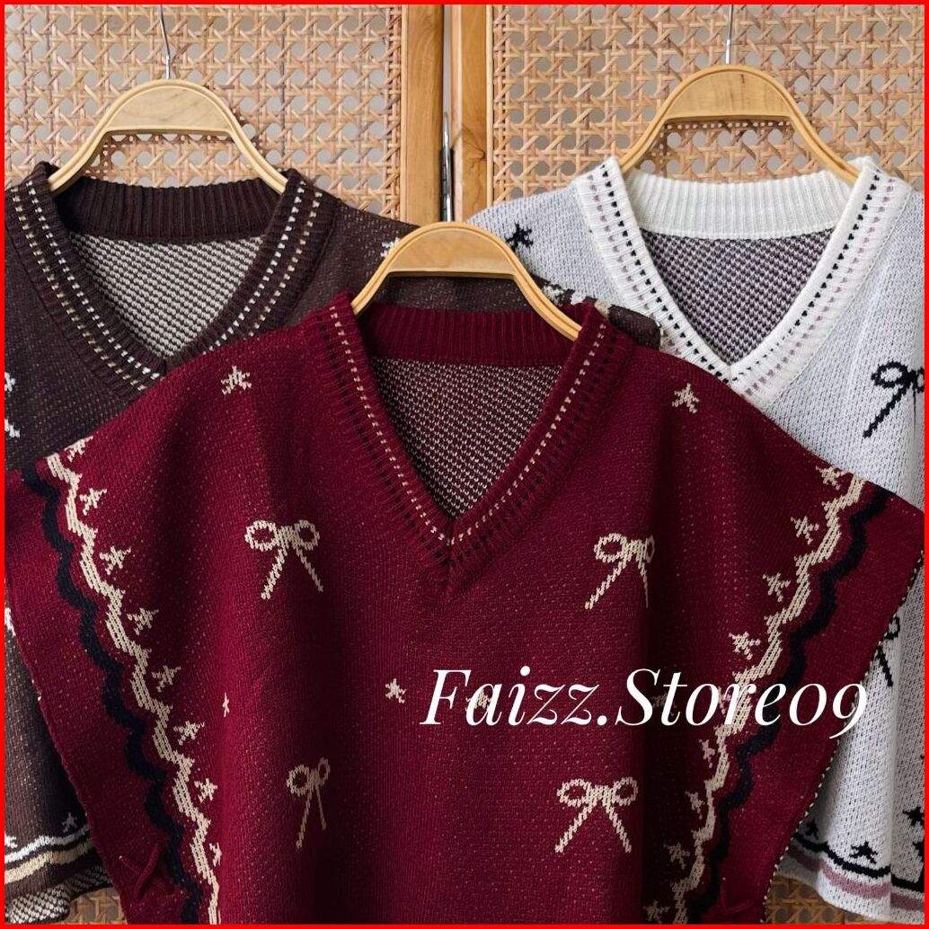 Ayundi Vest Knit - Atasan Rompi Rajut Wanti Kerah V-neck Motif Pita Tali Kur Samping Lucu Desain Moderen Korean Style Pr