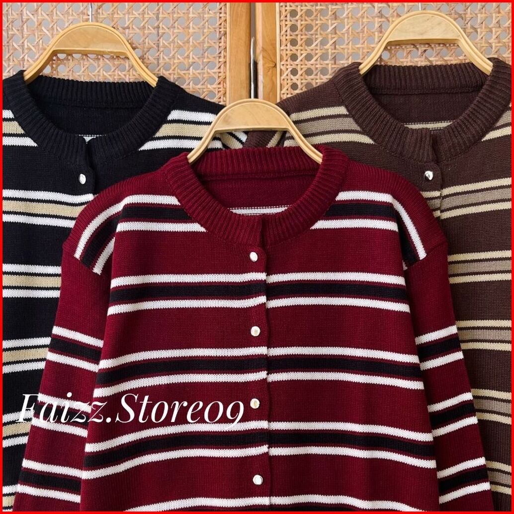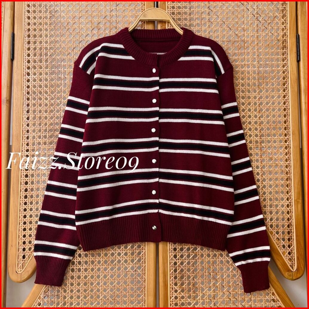 Arloot Cardy Knitwear - Atasan Cardigan Rajut Kancing Wanita Motif Stripe Baju Lucu Korean Style Premium