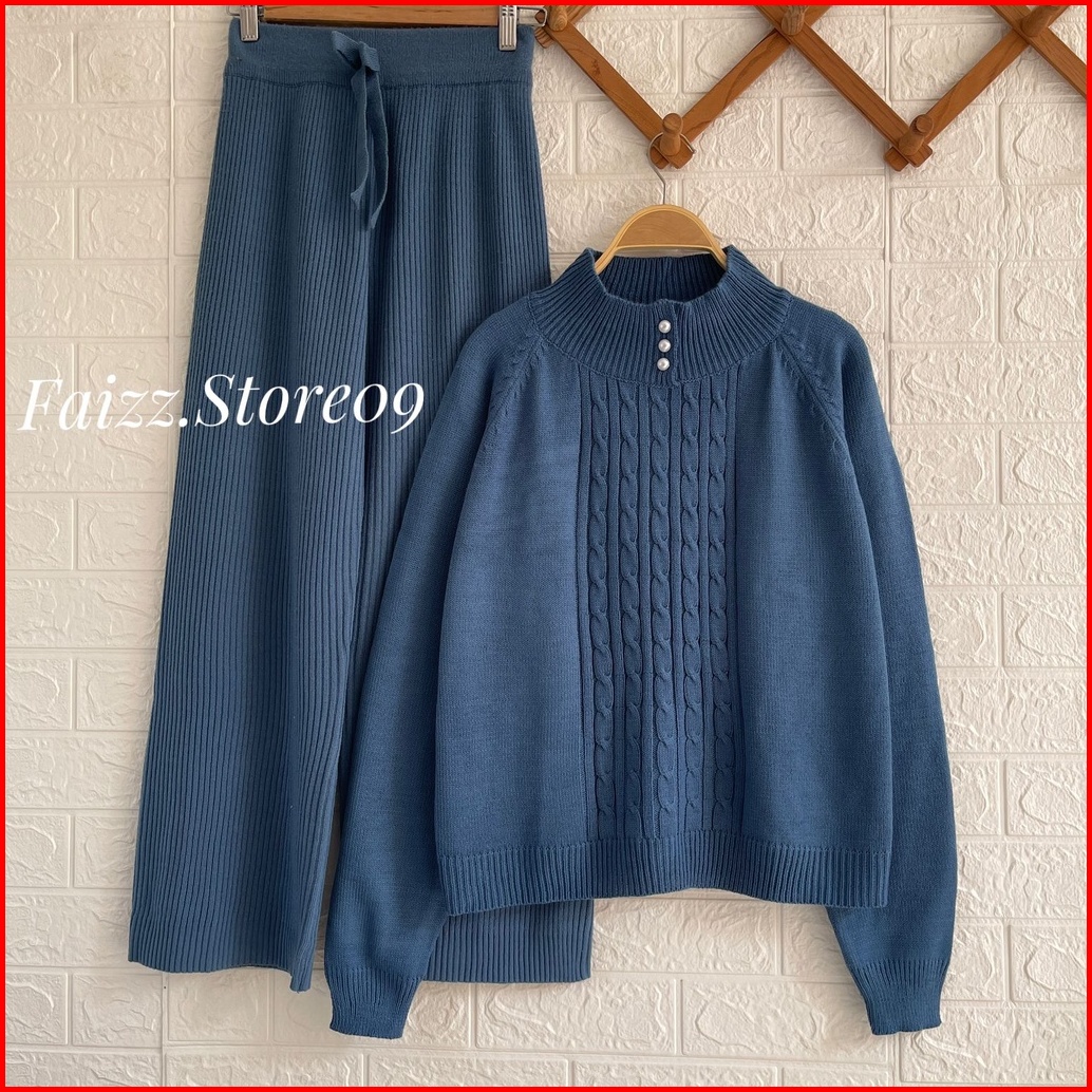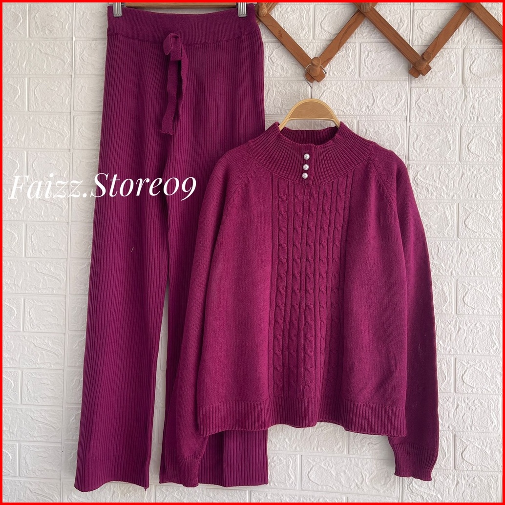 Oneset Sweater Rajut Hasna Setelan Celana Kulot Rajut Wanita