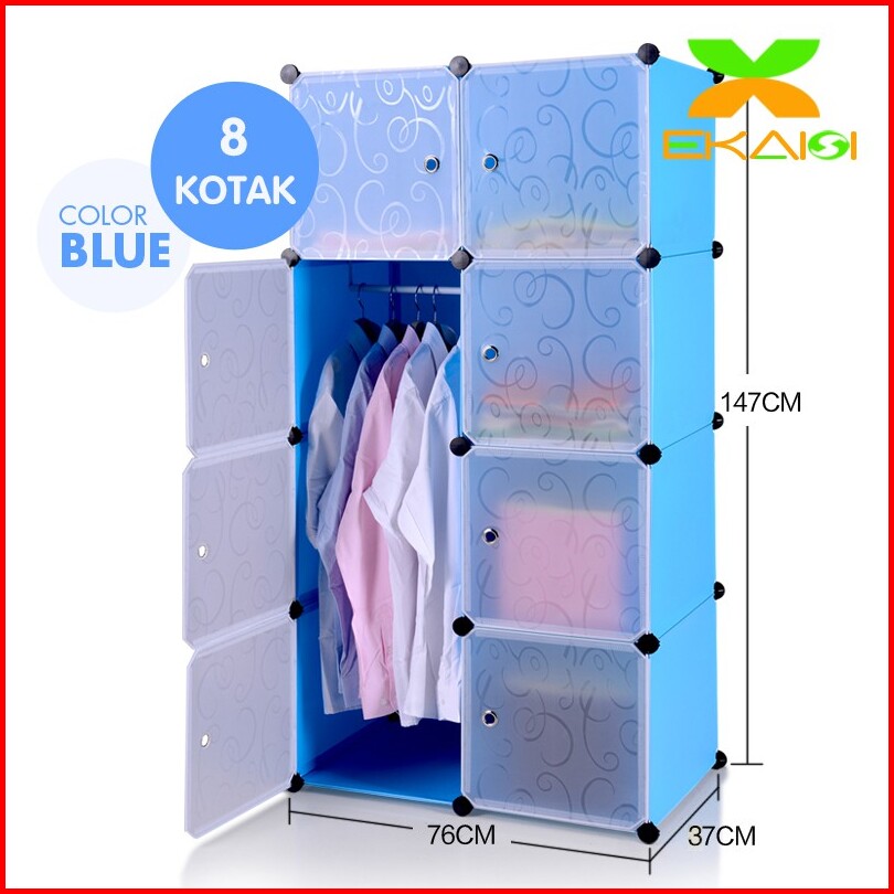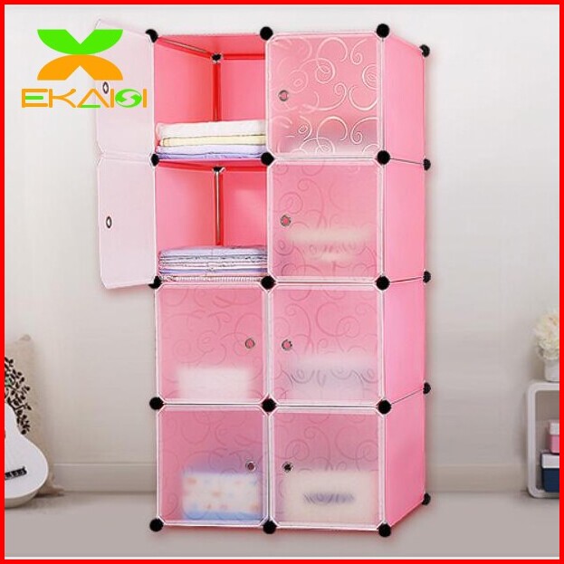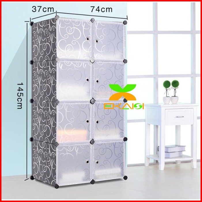 Lemari Pakaian Plastik Rak Serbaguna Susun Lemari Baju Anak Rak Portable 8 Kotak Ls