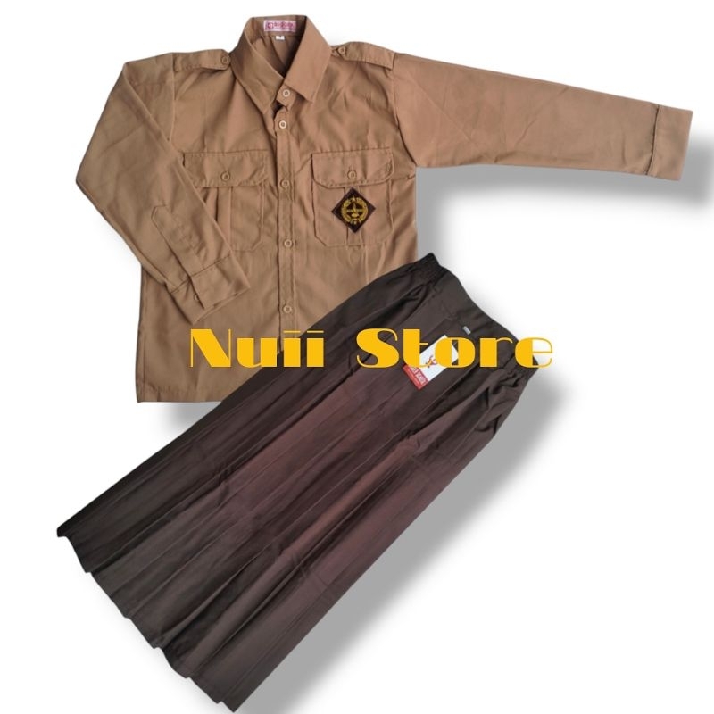 Setelan Seragam sekolah Sd BAJU PRAMUKA PENGGALANG LENGAN PANJANG DAN ROK COKLAT REMPEL PANJANG Untuk Anak Perempuan Kel