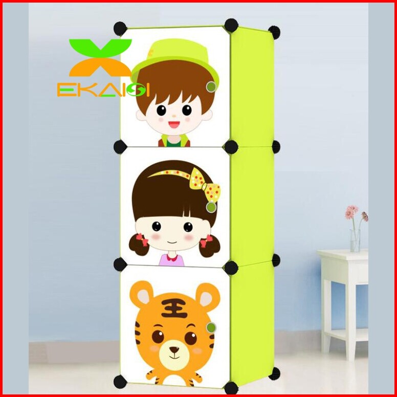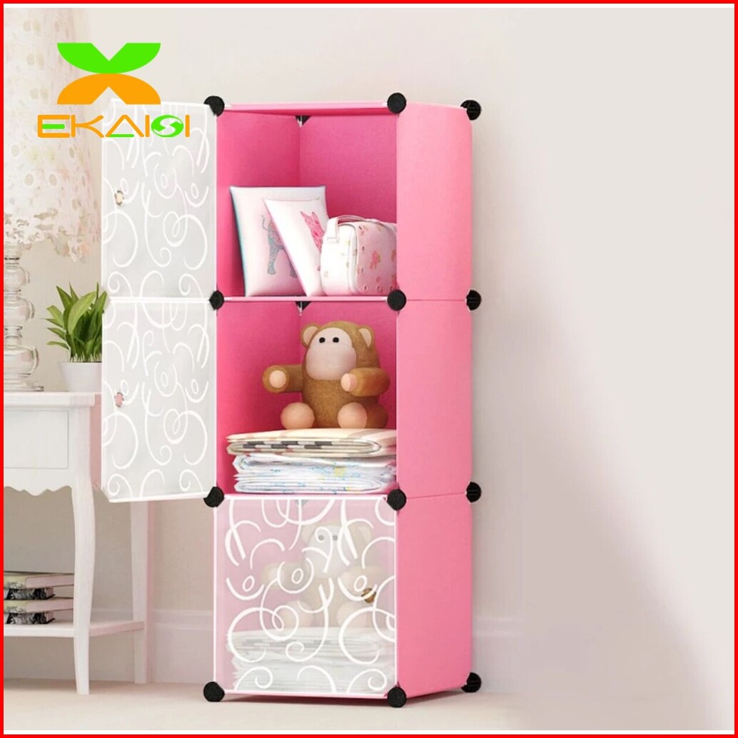 Lemari Portable Pakaian Rak Serbaguna Susun Plastik Lemari Baju Anak Rak Buku 3 Kotak Ls