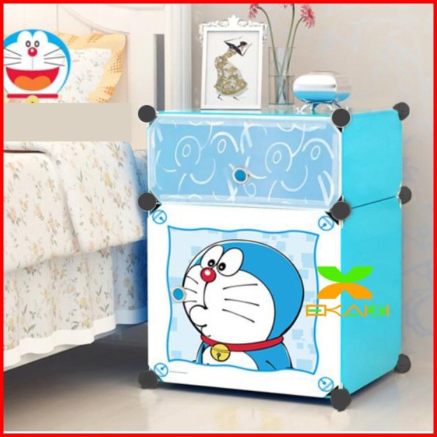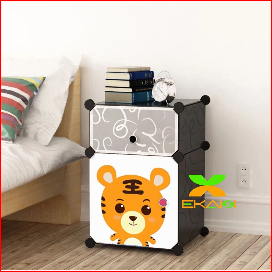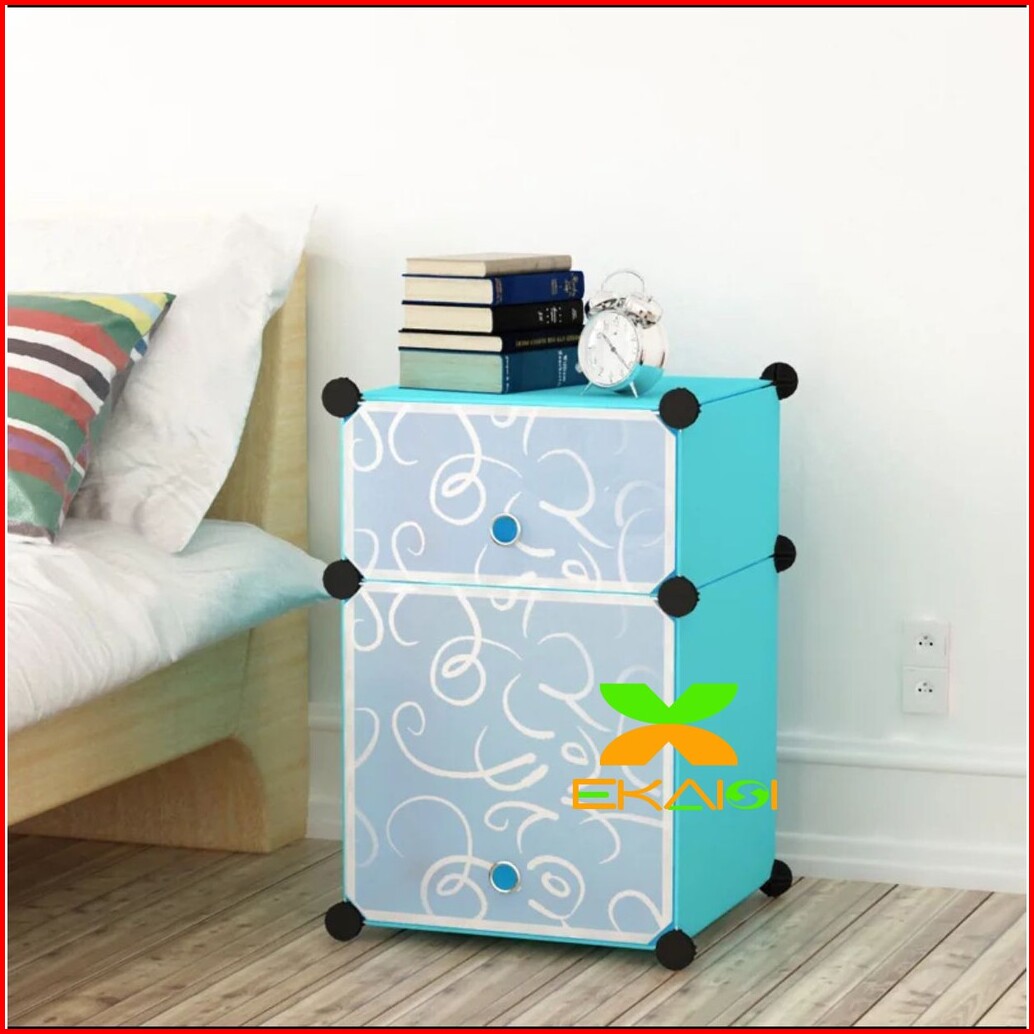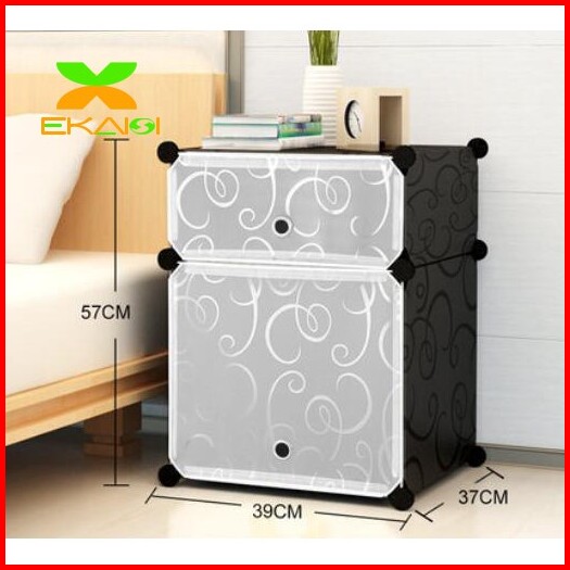 Lemari Pakaian Plastik Bedside Table Anti Air Rak Buku Susun 2 Pintu Kotak Pintu Ls