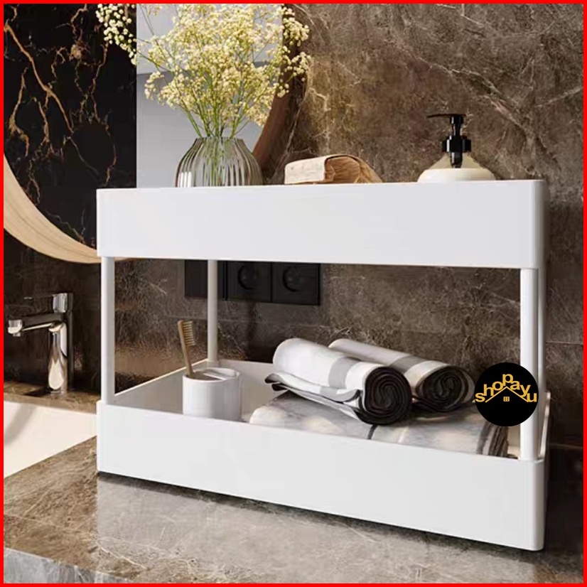 Rak Dapur Square Rak Kosmetik Rak Susun Serbaguna Rak Kamar Mandi Portable 2 Susun