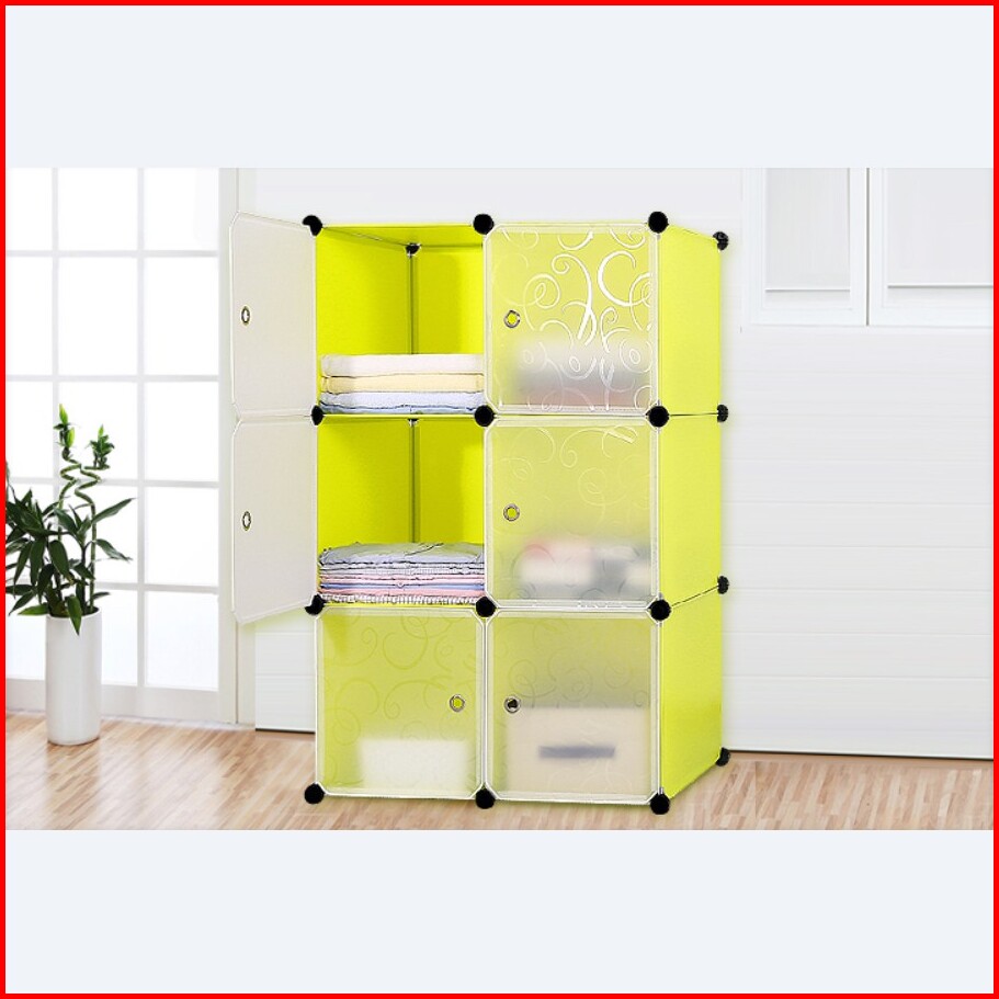Lemari Pakaian Lemari Plastik Rak Serbaguna Susun Lemari Baju Rak Tas 6 Pintu Kotak