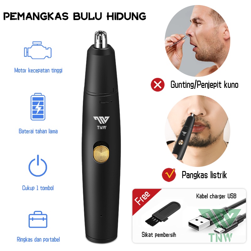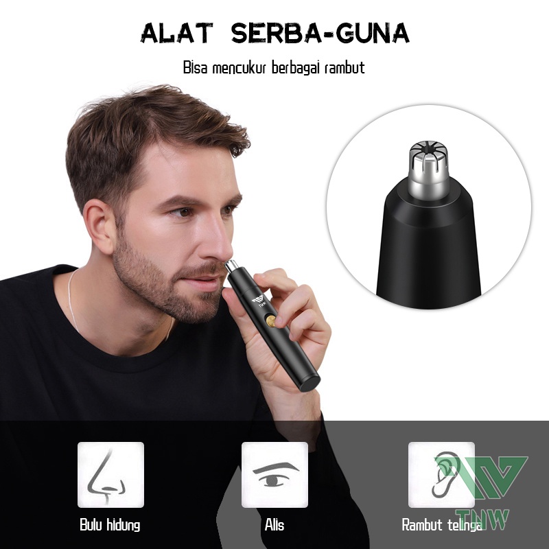 Alat Cukur Bulu Hidung & Telinga Aman Tanpa Sakit, Desain Modern Rechar TNW PN3 Nose Hair Trimmer Elektrik Profesional