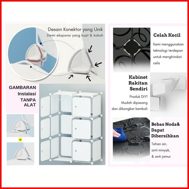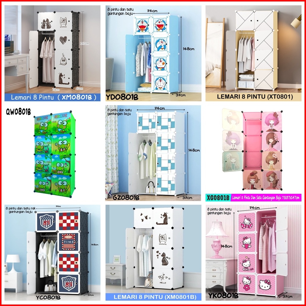Hoas Lemari Pakaian Plastik Serbaguna Rak Susun Lemari Baju 8 Pintu Kotak Susun
