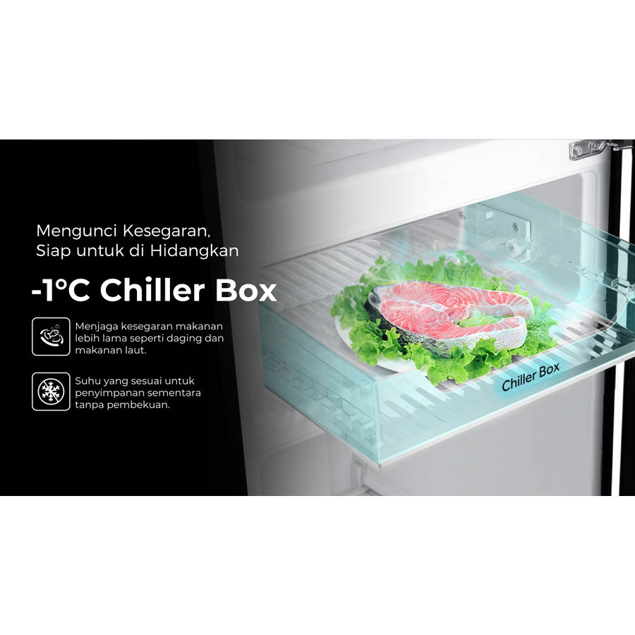 Kulkas 2 Pintu AQUA DTM 265 CBP DS Low Watt 260 Liter 48 WATT No Frost 7 TH