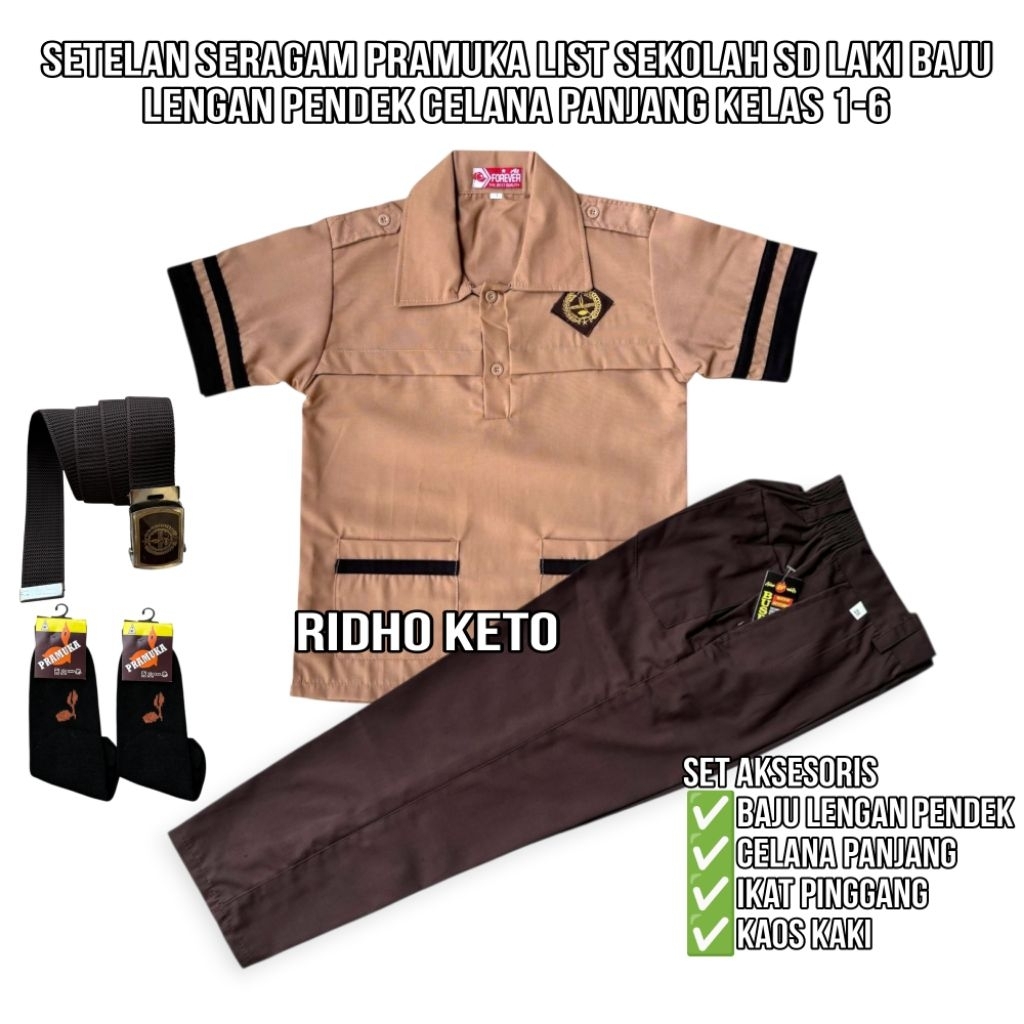 setelan pramuka siaga sekolah SD anak laki laki lengan pendek celana panjang pakaian seragam pramuka sekolah SD
