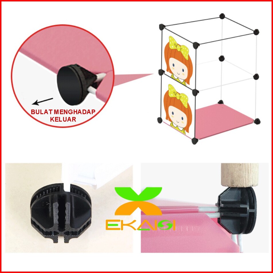 Lemari Pakaian Plastik Rak Serbaguna Susun Lemari Baju Portable 9 Kotak Pintu Kartun Ls