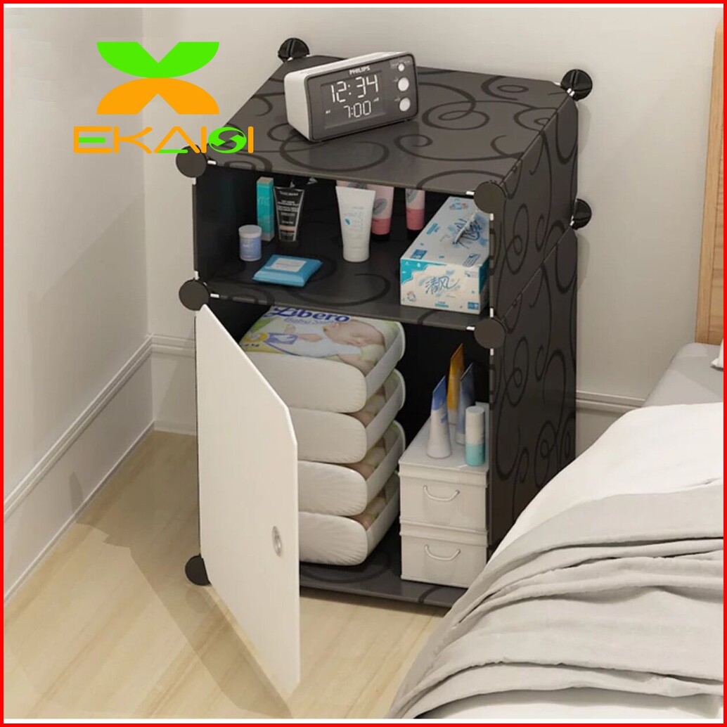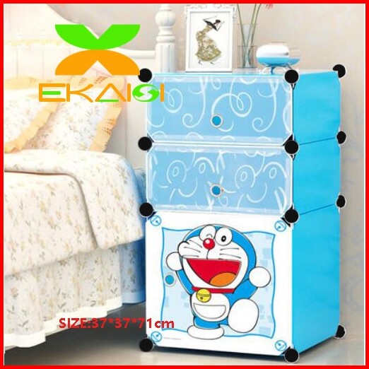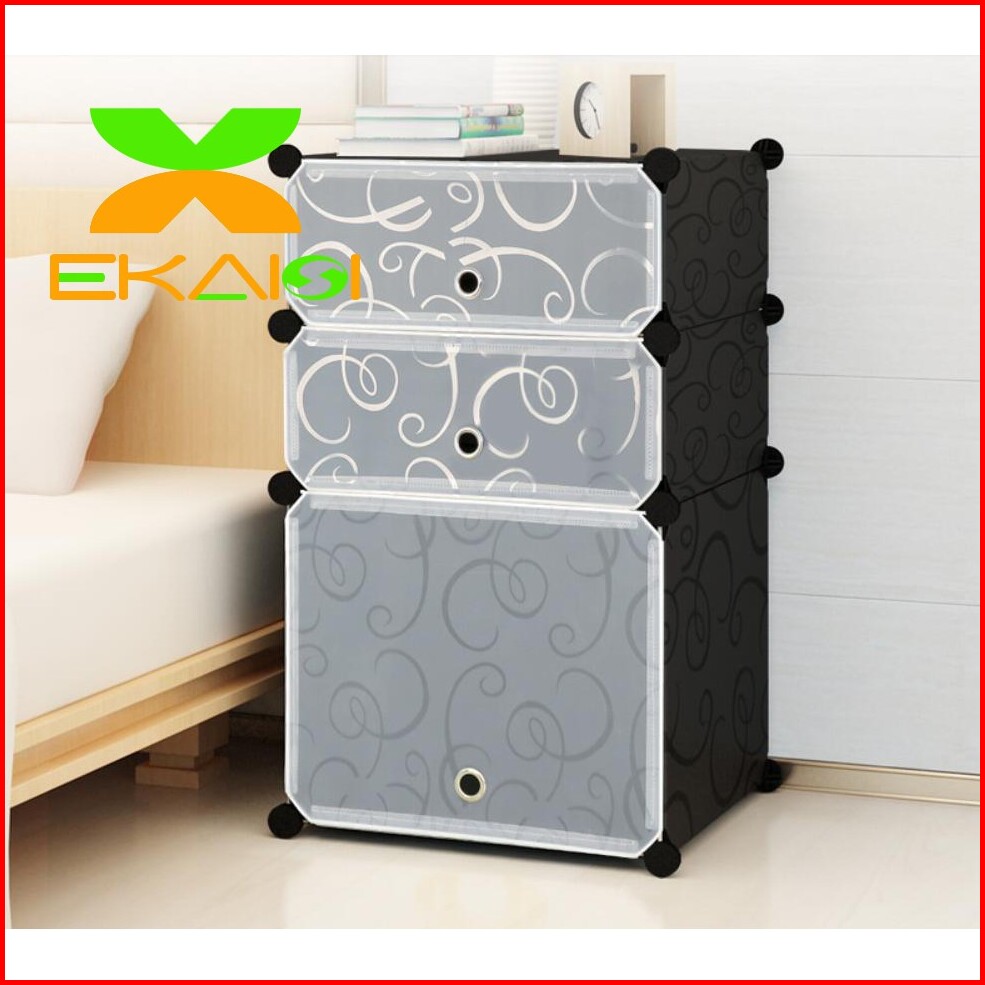 Lemari Plastik Bedside Table Anti Air Rak Buku Susun 3 Pintu Kotak Ls