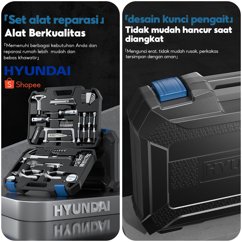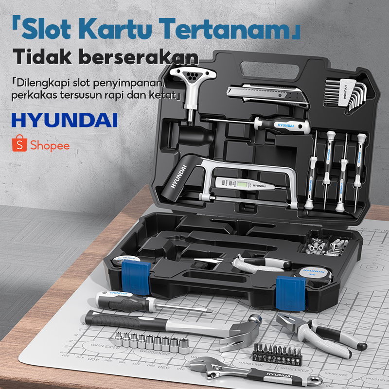 HYUNDAI BOR LISTRIK SET LENGKAP TOOL BOX ALAT PERKAKAS BATERAI CORDLESS TANG OBENG PALU KUNCI PAS TOOLKIT 55SET PERTUKAN