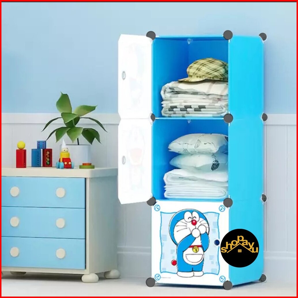 Lemari Baju Lemari Plasrik Portable Rak Susun Serbaguna Rak Buku Lemari Anak Bayi 3 Pintu