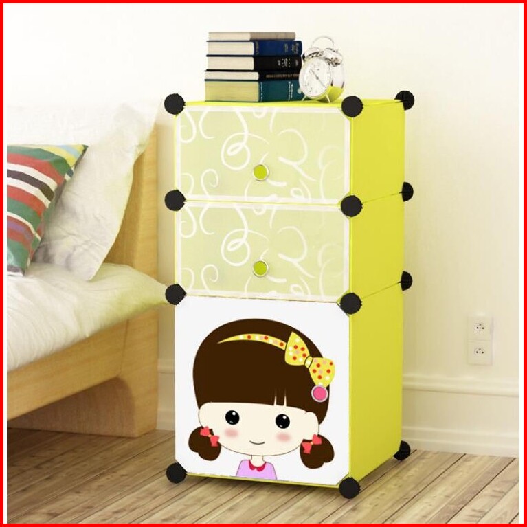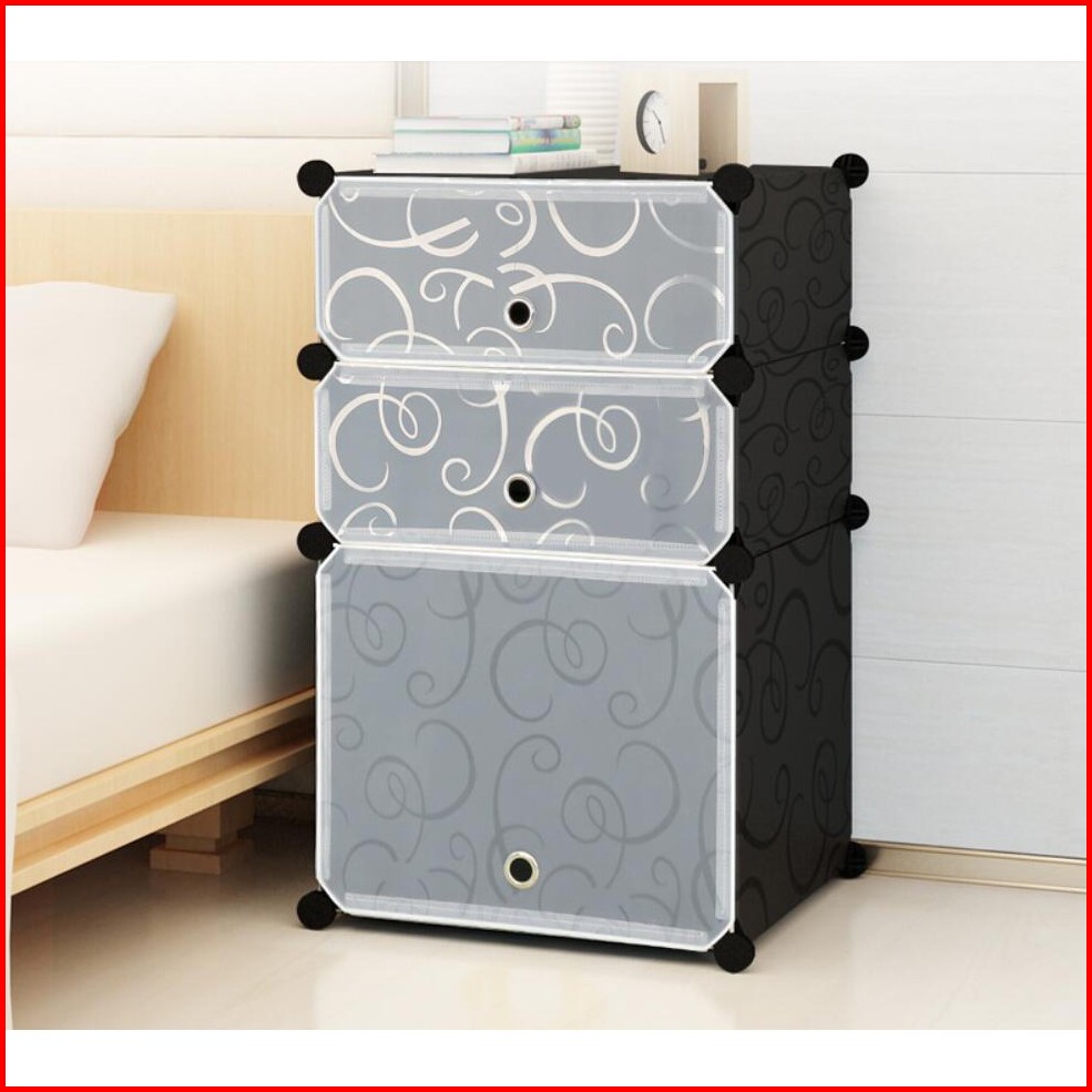 Lemari Plastik Bedside Table Anti Air Rak Buku Rak Susun 3 Pintu Kotak