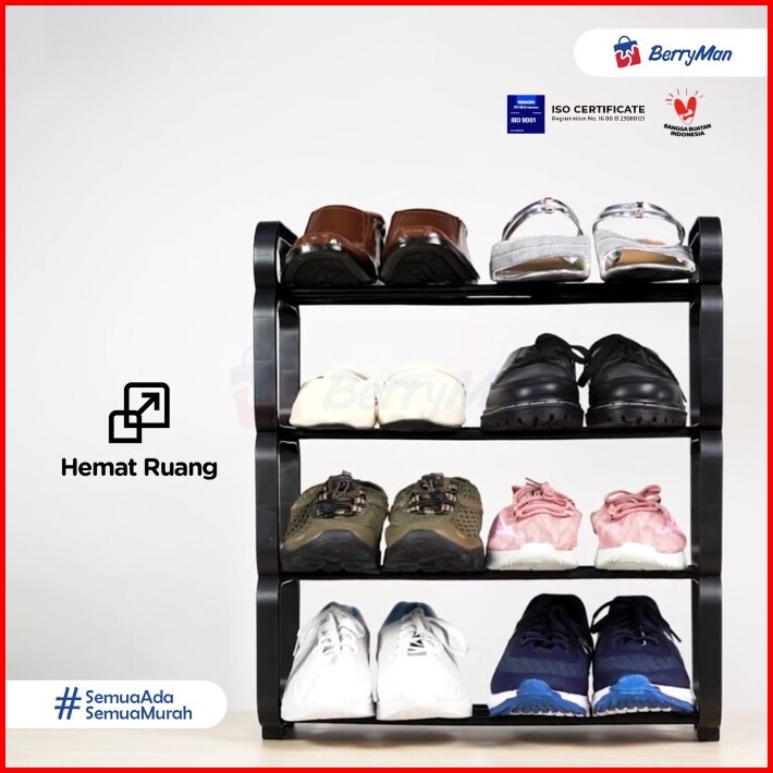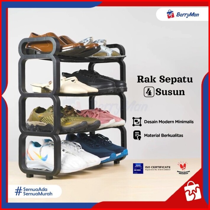 Rak Sepatu Sandal 4 Susun Plastik Aster Minimalis Portable Bongkar Pasang Serbaguna