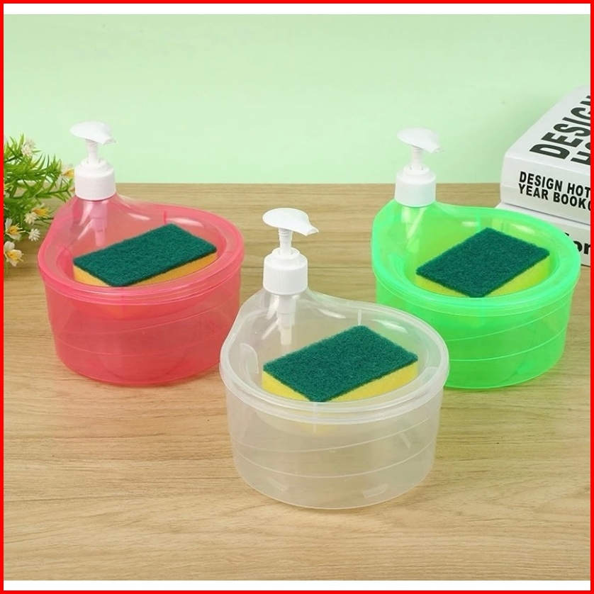Promo Dispenser Sabun Cuci Piring 2in1 Bentuk Mangkok Bulat Soap Pump Dispenser 2in1 Multifungsi Free Busa Sponge Tempat