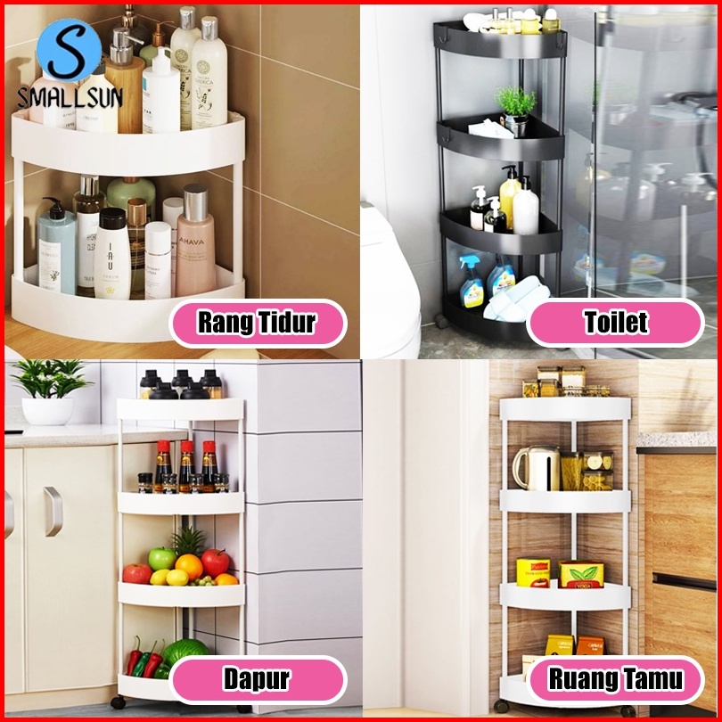 Ss Rak Susun Triangel Serbaguna 4 Tingkat Dengan Roda Rak Kamar Mandi Dapur Bahan Plastik Portable