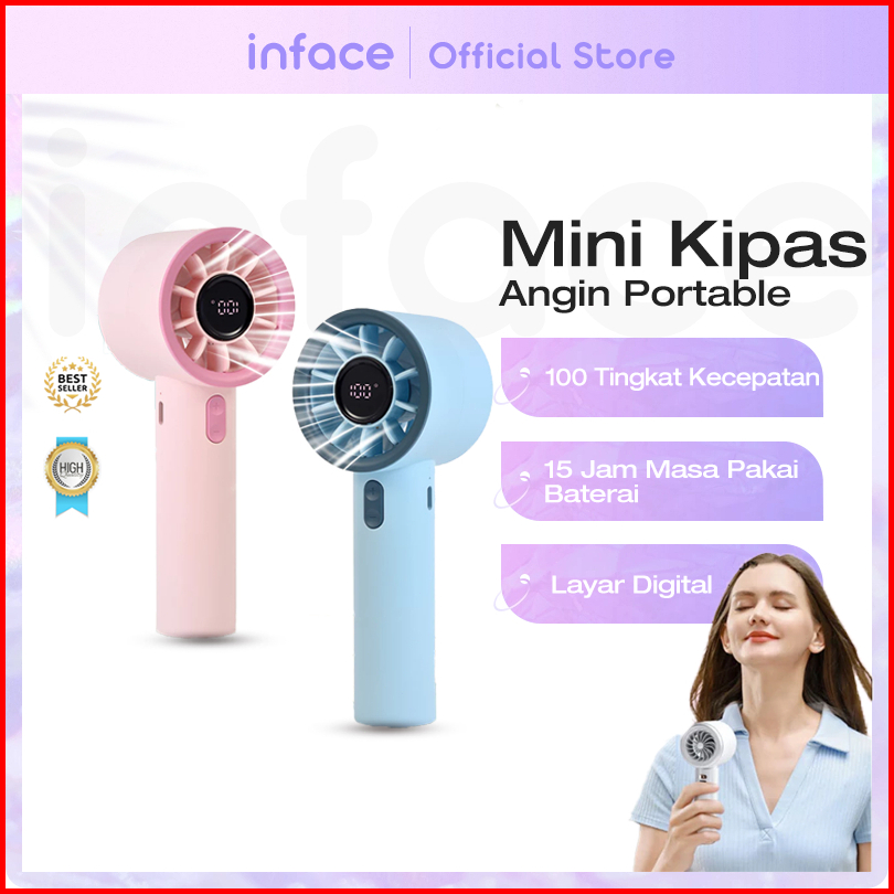 Inface Kipas Mini Portabel Angin Kencang Layar Led High-speed 10000mah Kecepatan Putaran Angin Super