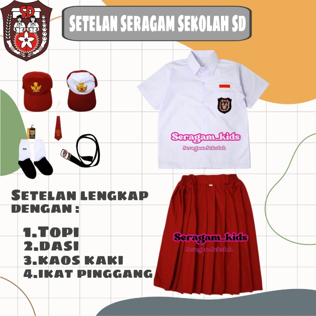 Setelan Super Lengkap Seragam Sekolah SD BAJU PENDEK ROK PENDEK Perempuan Kelas 1-6 SD
