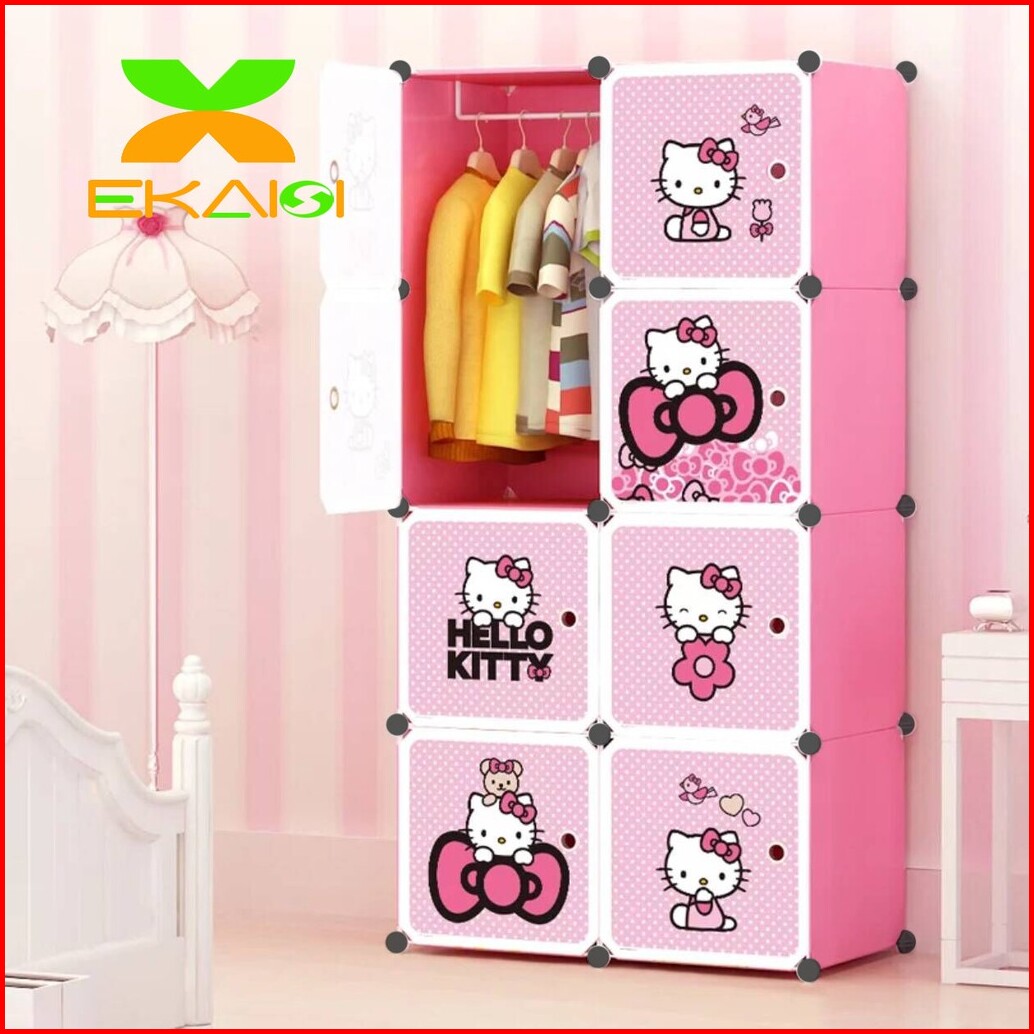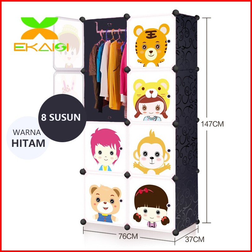Lemari Pakaian Plastik Rak Serbaguna Susun Lemari Baju Anak 8 Pintu Kartun Ganrungan Ls