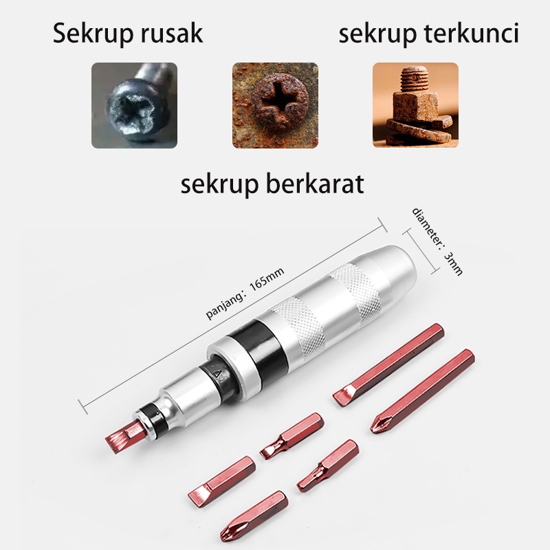 ISKU Obeng ketok set 13pcs Obeng Set Putar set S2 Drill bit bahan non-karat Impact screwdriver set Box besi Obeng Ketok