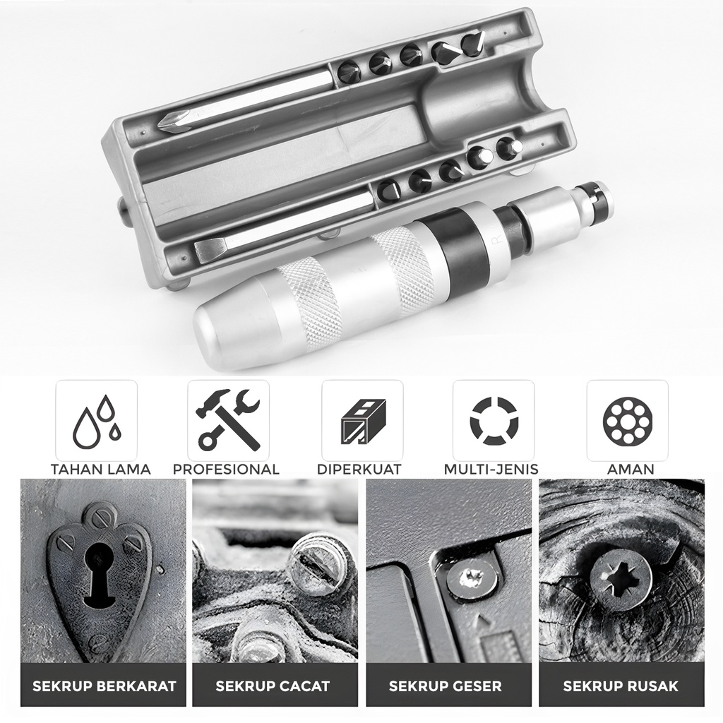 Allefix Obeng Ketok Screwdriver 1/4 Inch Set 13pcs - 6560