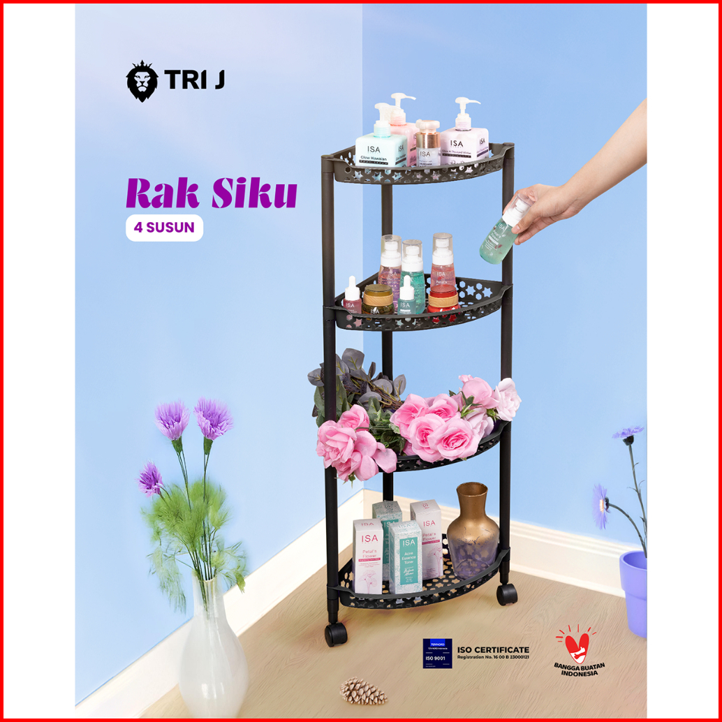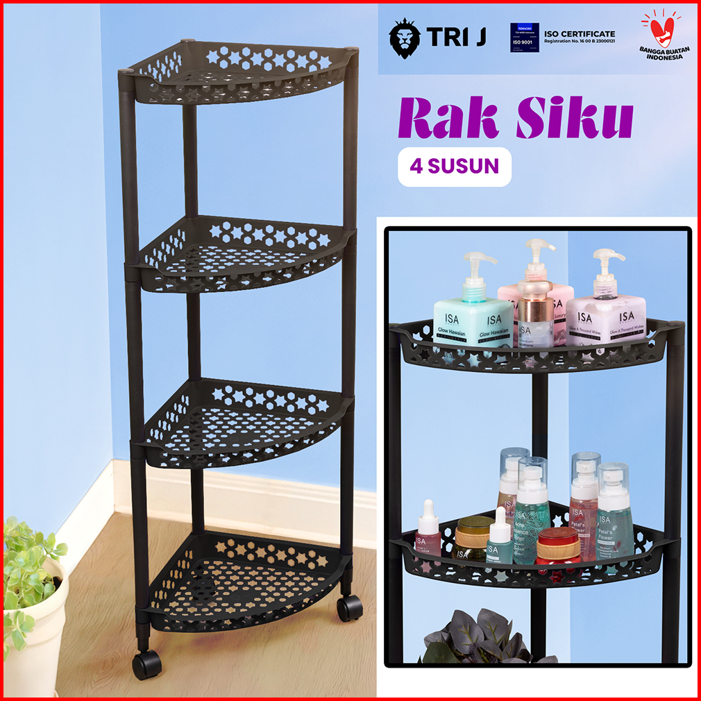Rak Troli Siku 4 Susun Serbaguna Dengan Roda Rak Trolly Sudut 4 Tingkat Rak Dapur Salon Kamar Mandi Dengan Roda Dorong T