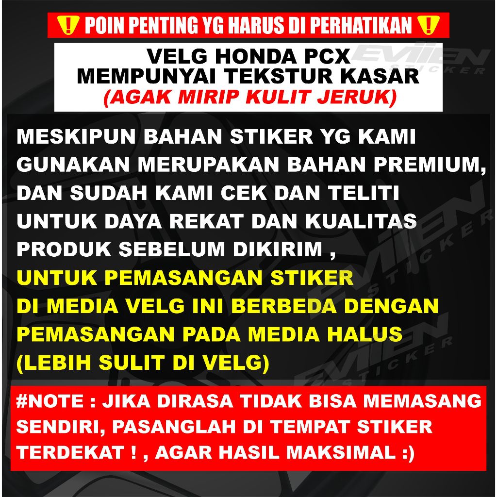 Stiker Velg Honda Pcx 160 Tahun 2021 - 2025 List Pelek Cutting Sticker Premium Keren Elegant